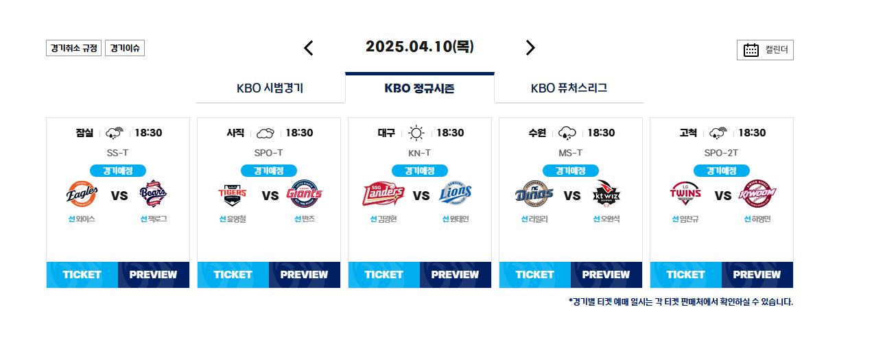 많은 곳에서 KBO 프로야구 응원하는 팀의 중계일정과 선발투수, 하이라이트 정보를 확인하실 수 있습니다. 하지만 KBO 공식 홈페이지를 이용하시면, 한 눈에 모든 것을 확인하실 수 있습니다.