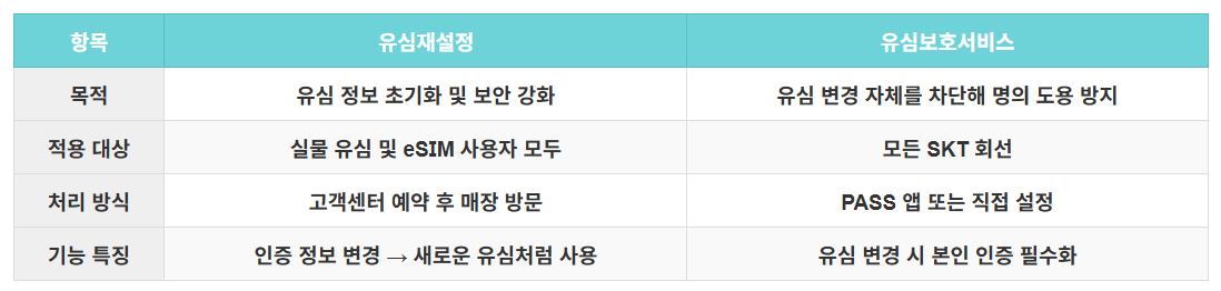 ✅ 유심 보호 서비스는 유심 변경 자체를 막아주는 방어벽이라면,